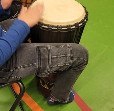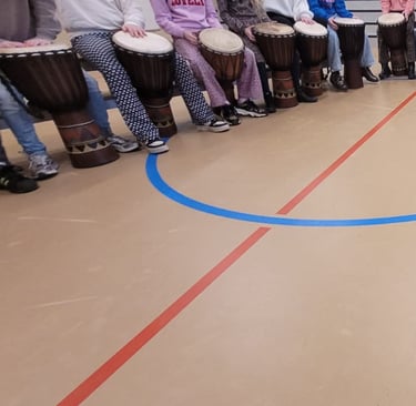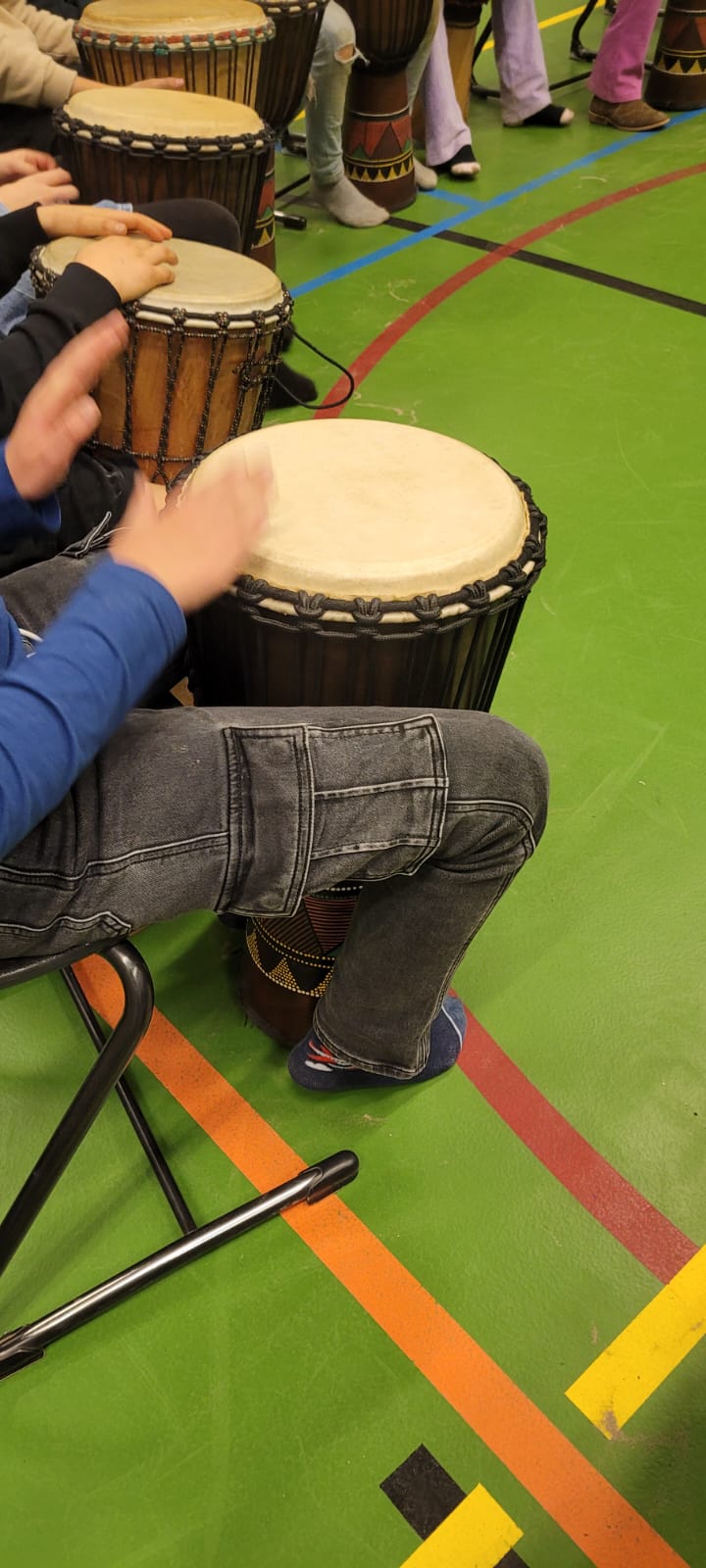 We beginnen met eenvoudige ritmes, waarna we samen drum ritmes spelen. Direct daarna spelen we mee op muziek.